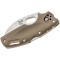 Ce couteau est doté d'une lame de 6.35cm en acier inoxydable AUS-8, réputé pour son bon équilibre entre tranchant, résistance à la corrosion et facilité d'affûtage. La lame offre une grande capacité de coupe et un potentiel de pénétration précis. Le manche en Griv-Ex terre foncé offre une prise en main sûre et confortable, tout en étant extrêmement résistant par rapport à son poids. Le mécanisme de verrouillage Lockback assure un maintien solide de la lame en position ouverte.
