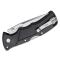 Cold Steel nous livre une version du stiletto italien sous stéroïdes, et contrairement aux versions automatiques italiennes faites dans des aciers 420 de basse qualité avec un profil de lames impossible à affûter, Cold Steel en fait un couteau utilisable avec un verrouillage de lames beaucoup plus solide et une gueule incroyable qui ne laisse pas indifférent. L'ouverture de la lame est très souple, un simple coup de poignet, une impulsion suffit à l'ouvrir. De plus, ce couteau dispose du système Emerson à ouverture en sortie de poche par friction sur le bord des vêtements.
