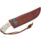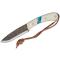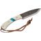 Couteau EDC Condor Blue River White Micarta/Turquoise Handles 1095 Carbon Blade Leather Sheath Salvador à lame fixe - Longueur totale 23.57cm - Longueur de lame 10.95cm - Epaisseur de lame 3mm - Lame de type drop point plain edge finition brut - Lame en acier carbone 1095 - Dureté 58-59HRC - Construction d'une seule pièce - Full Tang - Plaquettes du manche en white micarta & résine turquoise - Trou dans le manche avec dragonne - Etui Cuir - Made El Salvador