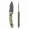 Cette version arbore une finition Black Stonewash sur la lame en acier 420 Stainless et des plaquettes en G-10 Vert Olive (OD Green), texturées et festonnées pour une prise en main sûre et confortable. Livré avec un étui Kydex et une chaînette pour un port en tour de cou immédiat.