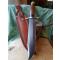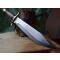 Couteau dans le style des Bark River Crocodile Dundee Bowie Marbles Stacked Leather Hunter à lame fixe - Longueur totale 41.27cm - Longueur de la lame 26.67cm - Lame en acier carbone 1055 - Lame de type Bowie - Garde & pommeau en acier - Manche en rouleaux de cuir - Etui Cuir