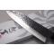 Couteau de cuisine Japonais Kanetsune Santoku DSR-1K6 Blade Wood Handle Made in Japan à lame fixe - Longueur totale 29.84cm - Longueur de lame 16.48cm - Lame en acier carbon DSR-1K6 finition marteau - Manche en bois - Garde en plastic - Made In Seki Japan