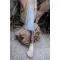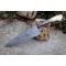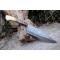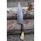 Longueur du manche 12cm - Longueur de la lame 17cm - Lame en Acier damas 256 couches - Manche en os - Mitres en bois - Entretoises - Fabrication artisanale - Les dessins de la lame sont unique comme une empreinte