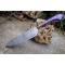 Longueur du manche 12cm - Longueur de la lame 15.5cm - Lame en Acier damas 256 couches - Manche en résine - Mitres en bois - Fabrication artisanale - Les dessins de la lame sont unique comme une empreinte - La forme du manche permet une prise en main agréable