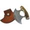 Couteau D'esquimau Ulu Inuit Lame Damas 256 Couches Manche Bois de Cerf Etui Cuir DM1111SG