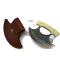 Couteau D'esquimau Ulu Inuit Lame Damas 256 Couches Manche Os Etui Cuir DM1111BO