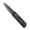 Couteau Maserin "Daga", lame damas style dague mono-tranchant avec "flipper" et cran intérieur, manche fibre de carbone marbrée doré au recto et titanium gris au verso.