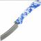 Le Daggerr Behemoth Slim Gzhel est une véritable pièce de collection qui fusionne la puissance d'un couperet tactique et la délicatesse de l'art traditionnel russe. Cette édition spéciale arbore le motif Gzhel, une peinture florale bleue sur fond blanc pur qui orne aussi bien la lame que le manche. Sa lame massive de 9,80 cm au profil Cleaver est forgée en acier japonais VG-10, garantissant un tranchant rasoir et une excellente tenue de coupe. La finition Satin de la lame sert de base à la gravure artistique, créant un objet au visuel unique sur le marché.