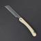 Le Daggerr Boris Britva est un couteau pliant au design inspiré des rasoirs droits classiques, combinant un style rétro avec des technologies modernes. Sa lame Sheepfoot en acier VG-10 offre une excellente performance de coupe et une bonne résistance à la corrosion. Le manche en G10 blanc assure une prise en main confortable et sécurisée. Le verrouillage Liner Lock garantit une utilisation en toute sécurité. L'ouverture se fait par un front flipper. Un trou pour dragonne est présent.