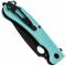 Mécanisme et Construction Ce couteau est monté sur des roulements à billes pour une ouverture rapide et fluide. Le manche est doté de plaquettes en FRN bleu clair (Nylon Renforcé de Fibre de Verre), un matériau léger et texturé offrant une prise en main solide. Le mécanisme de sécurité Liner Lock assure un verrouillage fiable.