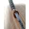 Poignée courbe teinté marron, extrémité sculptée et filigra de cuivre torsadé