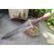 Couteau Dague De Chevalier Lame Acier Damas 256 Couches Manche Bois Garde laiton Etui Cuir Artisan