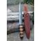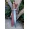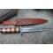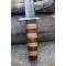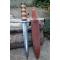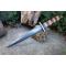 Reproduction Couteau dague de chevalier à lame fixe - Longueur totale 39cm - Longueur de lame 24cm - Lame en acier damas 256 couches - Double tranchant - Garde & pommeau en nickel - Manche en bois - Etui en cuir