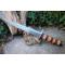 Couteau Dague De Chevalier Lame Acier Damas 256 Couches Manche Bois Garde Nickel Etui Cuir Artisan