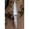 Longueur du manche 8cm - Longueur de la lame 7.5cm - Lame en Acier inox - Lame de type dague double tranchant - Manche en acier avec décor - Fabrication Artisanale - Etui simili cuir
