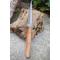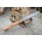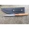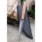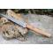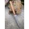 Couteau Sheffield Sgian Dubh à lame fixe - Longueur totale 22cm - Longueur de lame 11cm - Lame en acier damas 256 couches - Double tranchant - Construction d'une seule pièce - Dos du manche guilloché - Full Tang - Plaquettes du manche en bois d'olivier - Etui en cuir