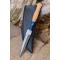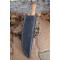 Couteau Sheffield Sgian Dubh à lame fixe - Longueur totale 23cm - Longueur de lame 12cm - Lame en acier damas 256 couches - Double tranchant - Construction d'une seule pièce - Full Tang - Plaquettes du manche en bois d'olivier - Mitres en résine - Etui en cuir