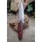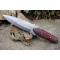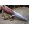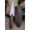 Couteau Sheffield Sgian Dubh à lame fixe - Longueur totale 25.5cm - Longueur de lame 13cm - Lame en acier carbone façon damas - Gravures laser - Double Tranchant - Construction d'une seule pièce - Full Tang - Manche en bois - Trou dans le manche - Etui en cuir