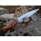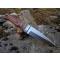 Couteau Sheffield Sgian Dubh fixe - Longueur totale 23.49cm - Longueur de lame 12.06cm - Lame à haute teneur en carbone - Construction d'une seule pièce - Full Tang - Plaquettes du manche en bois - Mitres en métal - Etui en cuir