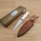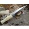 Couteau Sheffield Sgian Dubh fixe - Longueur totale 23.49cm - Longueur de lame 12.06cm - Lame à haute teneur en carbone - Construction d'une seule pièce - Full Tang - Plaquettes du manche en en Os - Mitres en métal - Etui en cuir