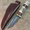 Couteau Damas 128 Couches Manche Bois de Cerf Etui Cuir Fabrication Artisanale DM1075