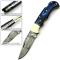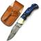 Couteau EDC FH Knives Damascus Folder 128 Layers Blue Pakkawwod Handle Leather Sheath pliant - Longueur fermé 9.53cm - Longueur de lame 6.99cm - Lame en acier damas 128 couches - Lame de type clip point plain edge - Dos de la lame guilloché - Ressort guilloché - Platines & mitres en laiton - Plaquettes du manche en bois - Trou dans le manche pour dragonne - Ouverture à 2 mains - Système de sécurité lockback - Etui cuir