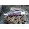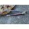 Longueur fermé 10.2cm - Longueur ouvert 18.50cm - Platines en nickel - Mitres en laiton - Plaquettes du manche en Bois - Ressort du dos guilloché - Lame en damas 128 couches - Les dessins de la lame sont comme une empreinte, ils sont uniques - Système à cran forcé - Ouverture à 2 mains - Fabrication artisanale