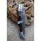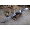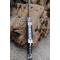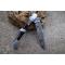 Longueur fermé 12cm - Longueur ouvert 22.50cm - Platines et mitres en laiton - Plaquettes du manche en bois - Insert acier - Tire bouchons - Ressort du dos guilloché avec abeille - Lame en damas 128 couches - Les dessins de la lame sont comme une empreinte, ils sont uniques - Système à cran forcé - Ouverture à 2 mains