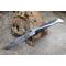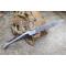 Longueur fermé 12cm - Longueur ouvert 22.50cm - Platines et mitres en laiton - Plaquettes du manche en bois - Insert acier - Tire bouchons - Ressort du dos guilloché avec abeille - Lame en damas 128 couches - Les dessins de la lame sont comme une empreinte, ils sont uniques - Système à cran forcé - Ouverture à 2 mains