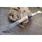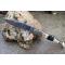 Longueur fermé 12cm - Longueur ouvert 22.50cm - Platinesen nickel - Mitres en laiton - Plaquettes du manche en bois & corne - Tire bouchons - Ressort du dos guilloché avec abeille - Lame en damas 128 couches - Les dessins de la lame sont comme une empreinte, ils sont uniques - Système à cran forcé - Ouverture à 2 mains