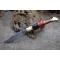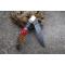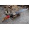 Longueur fermé 12cm - Longueur ouvert 22.50cm - Platines et mitres en laiton - Plaquettes du manche en bois & corne - Tire bouchons - Ressort du dos guilloché avec abeille - Lame en damas 128 couches - Les dessins de la lame sont comme une empreinte, ils sont uniques - Système à cran forcé - Ouverture à 2 mains