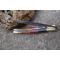 Longueur fermé 12cm - Longueur ouvert 22.50cm - Platines et mitres en laiton - Plaquettes du manche en bois & corne - Tire bouchons - Ressort du dos guilloché avec abeille - Lame en damas 128 couches - Les dessins de la lame sont comme une empreinte, ils sont uniques - Système à cran forcé - Ouverture à 2 mains
