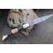 Longueur fermé 12cm - Longueur ouvert 22.50cm - Platines et mitres en laiton - Plaquettes du manche en bois & corne - Tire bouchons - Ressort du dos guilloché avec abeille - Lame en damas 128 couches - Les dessins de la lame sont comme une empreinte, ils sont uniques - Système à cran forcé - Ouverture à 2 mains