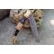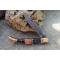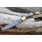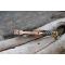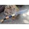 Longueur fermé 12cm - Longueur ouvert 22.50cm - Platines et mitres en laiton - Plaquettes du manche en bois & corne - Tire bouchons - Ressort du dos guilloché avec abeille - Lame en damas 128 couches - Les dessins de la lame sont comme une empreinte, ils sont uniques - Système à cran forcé - Ouverture à 2 mains - Micro Griffure sur une plaquette corne - Taille cheveux