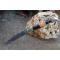 Longueur fermé 12cm - Longueur ouvert 22.50cm - Platines et mitres en laiton - Plaquettes du manche en bois & corne - Tire bouchons - Ressort du dos guilloché avec abeille - Lame en damas 128 couches - Les dessins de la lame sont comme une empreinte, ils sont uniques - Système à cran forcé - Ouverture à 2 mains