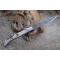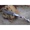 Longueur fermé 12cm - Longueur ouvert 22.50cm - Platines et mitres en nickel - Plaquettes du manche en résine façon caramel - Tire bouchons - Ressort du dos guilloché avec abeille - Lame en damas 128 couches - Les dessins de la lame sont comme une empreinte, ils sont uniques - Système à cran forcé - Ouverture à 2 mains