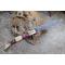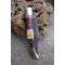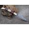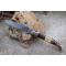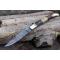 Longueur fermé 12cm - Longueur ouvert 22.50cm - Platines du manche en acier - Mitres en laiton - Plaquettes du manche en 3 bois - Entretoises en nickel - Tire bouchons - Ressort du dos guilloché avec abeille - Lame en damas 128 couches - Les dessins de la lame sont comme une empreinte, ils sont uniques - Système à cran forcé - Ouverture à 2 mains - Fabrication artisanale
