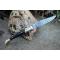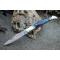 Longueur fermé 12cm - Longueur ouvert 22.50cm - Platines en nickel - Mitres en laiton - Plaquettes du manche en corne - Veine blanche - Tire bouchons - Ressort du dos guilloché avec abeille - Lame en damas 128 couches - Les dessins de la lame sont comme une empreinte, ils sont uniques - Système à cran forcé - Ouverture à 2 mains