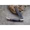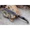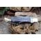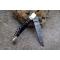 Longueur fermé 12cm - Longueur ouvert 22.50cm - Platines et mitres en laiton - Plaquettes du manche en corne - Veine blanche - Tire bouchons - Ressort du dos guilloché avec abeille - Lame en damas 128 couches - Les dessins de la lame sont comme une empreinte, ils sont uniques - Système à cran forcé - Ouverture à 2 mains