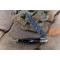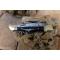 Longueur fermé 12cm - Longueur ouvert 22.50cm - Platines et mitres en laiton - Plaquettes du manche en corne - Veines blanches - Tire bouchons - Ressort du dos guilloché avec abeille - Lame en damas 128 couches - Les dessins de la lame sont comme une empreinte, ils sont uniques - Système à cran forcé - Ouverture à 2 mains