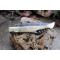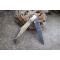 Longueur fermé 12cm - Longueur ouvert 22.50cm - Mitres en laiton - Platines du manche en nickel - Plaquettes du manche en os façon Ivoirine - Tire bouchons - Ressort du dos guilloché avec abeille - Lame en damas 128 couches - Les dessins de la lame sont comme une empreinte, ils sont uniques - Système à cran forcé - Ouverture à 2 mains - Fabrication Artisanale