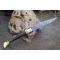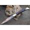 Longueur fermé 12cm - Longueur ouvert 22.50cm - Platines et mitres en laiton - Plaquettes du manche en bois rosewood - Tire bouchons - Ressort du dos guilloché avec abeille - Lame en damas 128 couches - Les dessins de la lame sont comme une empreinte, ils sont uniques - Système à cran forcé - Ouverture à 2 mains