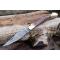 Longueur fermé 12cm - Longueur ouvert 22.50cm - Platines et mitres en laiton - Plaquettes du manche en bois rosewood - Tire bouchons - Ressort du dos guilloché avec abeille - Lame en damas 128 couches - Les dessins de la lame sont comme une empreinte, ils sont uniques - Système à cran forcé - Ouverture à 2 mains