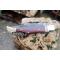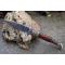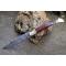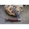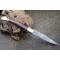 Longueur fermé 12cm - Longueur ouvert 22.50cm - Platines et mitres en laiton - Plaquettes du manche en bois rosewood - Tire bouchons - Ressort du dos guilloché avec abeille - Lame en damas 128 couches - Les dessins de la lame sont comme une empreinte, ils sont uniques - Système à cran forcé - Ouverture à 2 mains