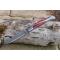 Longueur fermé 12cm - Longueur ouvert 22.50cm - Platines et mitres en laiton - Plaquettes du manche en bois rubis - Insert acier - Tire bouchons - Ressort du dos guilloché avec abeille - Lame en damas 128 couches - Les dessins de la lame sont comme une empreinte, ils sont uniques - Système à cran forcé - Ouverture à 2 mains