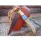 Couteau Damas Lame 128 Couches Façon Laguiole pliant - Longueur fermé 11.43cm - Longueur de lame 10.16cm - Lame en acier damas 128 couches - Lame de type clip point - Platines & mitres en laiton guillochées - Plaquettes du manche en os de buffalo & turquoise - Etui cuir