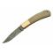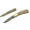Système de sécurité lockback. Longueur fermé 10,16cm. Longueur de lame 7,62cm. Lame en acier damas 128 couches. Plaquettes du manche en os de buffalo. Platines & mitres en laiton. Platines guillochées. Ressort guilloché.