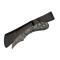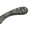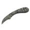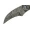Longueur totale 17.78cm. Longueur de lame 6.35cm. Lame de type hook en acier damas 256 couches. Plaquettes du manche en résine noir & blanc. Lame construction plate semelle. Etui cuir noir.