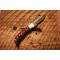 Couteau EDC Damascus Twisted Wood Handle Damascus Blade 128 Layers Lockback Leather Sheath pliant - Longueur fermé 9.53cm - Longueur de lame 7.62cm - Lame en acier damas 128 couches - Lame de type clip point plain edge - Dos de la lame guilloché - Platines et mitres en laiton - Ressort guilloché - Plaquettes du manche en bois black & red - Ouverture à 2 mains - Système de sécurité lockback - Etui cuir