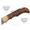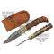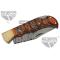 Couteau EDC Damascus Twisted Wood Handle Damascus Blade 128 Layers Lockback Leather Sheath pliant - Longueur fermé 9.53cm - Longueur de lame 7.62cm - Lame en acier damas 128 couches - Lame de type clip point plain edge - Dos de la lame guilloché - Platines et mitres en laiton - Ressort guilloché - Plaquettes du manche en bois black & brown - Ouverture à 2 mains - Système de sécurité lockback - Etui cuir